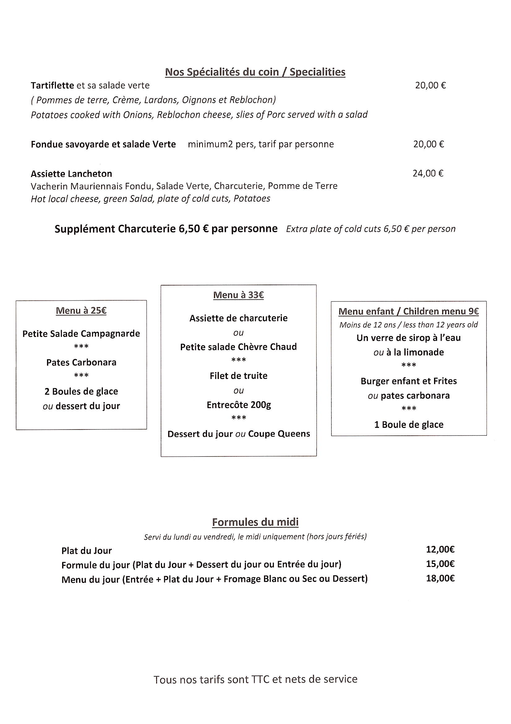 This typical establishment consists of two rooms equipped with toilet, also available for disabled people combining modern and old style: a room of 40 seats including the bar and fireplace, another 100 seats for groups, banquets, weddings, baptisms, communions .. .